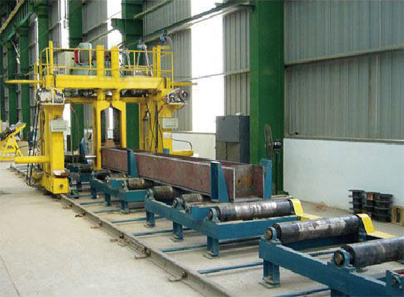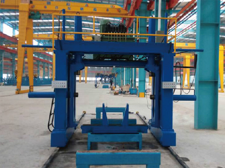 本機主要由導軌、行走驅動裝置、機架與平臺、上壓緊裝置、側壓緊裝置、液壓系統、電控系統等部件組成。本機為手動操作,采用工件不動,主機移動的方式。與工件移動,主機不動相比,主機移動的定位效果準確。本機主要用以完成∪型組立和箱型組立。本機適用工件尺寸可根據客戶需求定制。