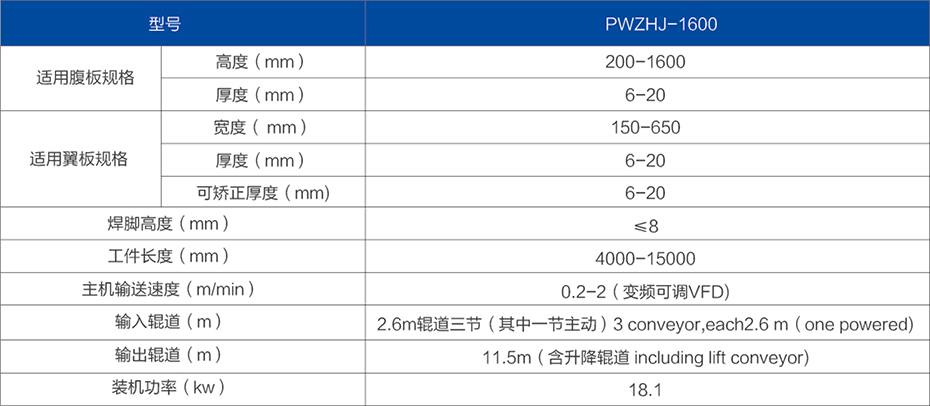 H型鋼組焊矯一體機是一種H型鋼焊接生產設備,集H型鋼的精確組立、二氧化碳或埋弧焊焊接、翼緣板焊接變形矯正于一體。設備占地面積少,單位生產面積的產出量高,是生產輕型焊接H型鋼和T型鋼的設備。
